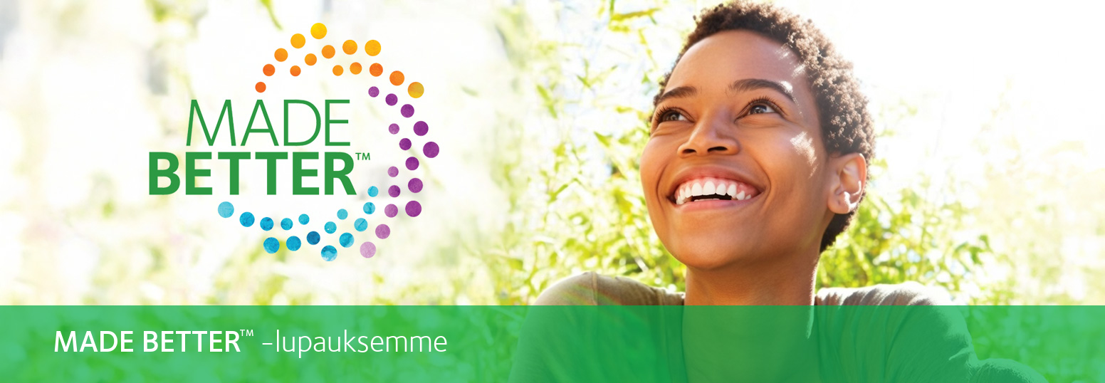 Vuosien innovointiin perustuva MADE BETTERTM ‑lupauksemme koskee fiksumpien ja kestävämpien valintojen tekemistä lupaukseen sisältyvien piilolinssituotteidemme osalta.*1 Se kuvastaa päivittäistä työtämme, saavuttamaamme edistystä ja jatkuvaa omistautumistamme valoisamman tulevaisuuden puolesta – ihmisten ja planeettamme hyväksi.